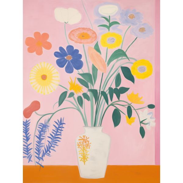 Dieses lebendige Poster zeigt eine künstlerische Darstellung einer Blumenvase mit bunten Blüten vor einem sanften rosa Hintergrund. Der Illustrationsstil verleiht jedem Raumdekor eine moderne und fröhliche Atmosphäre. Perfekt, um einen Hauch von Farbe und Eleganz zu verleihen. Produkt enthält nur ein Poster.