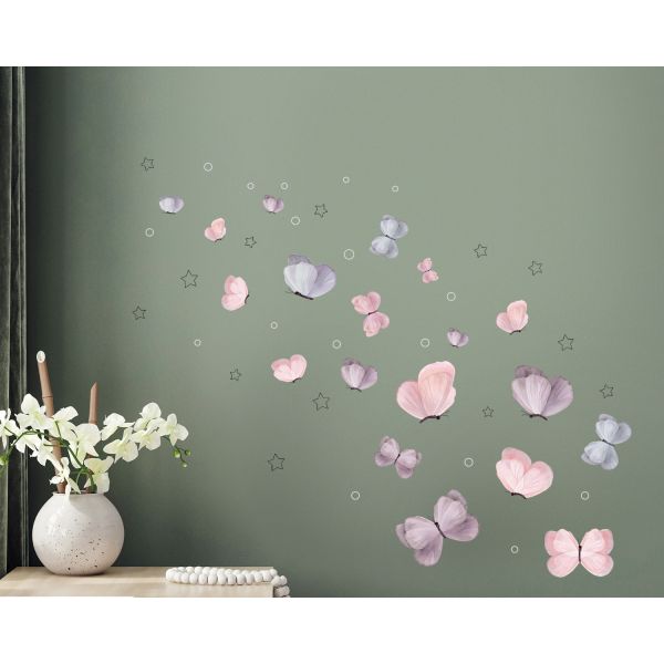Wandtattoo - Rosa, Lila und blaue Schmetterlinge